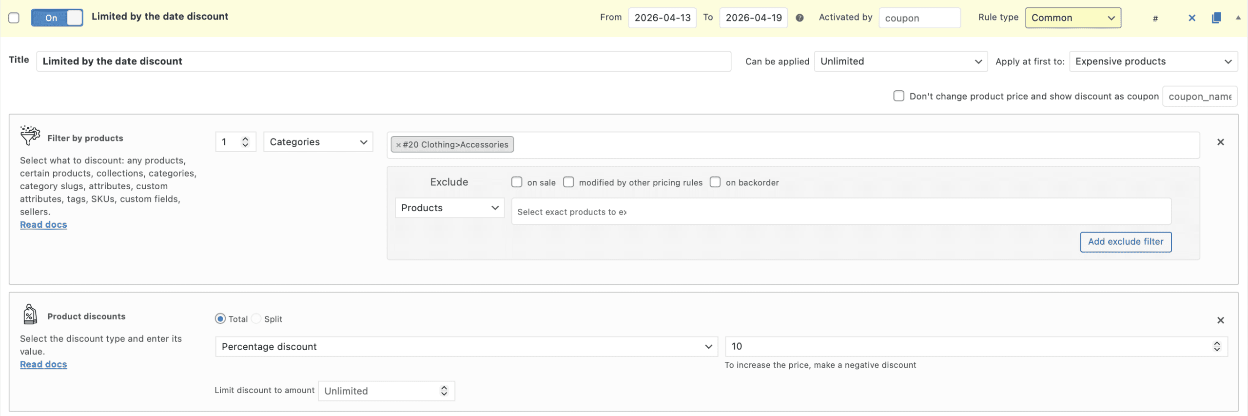 Enter the date range when the rule should be applied to the products and it’ll disable automatically on the end date.
