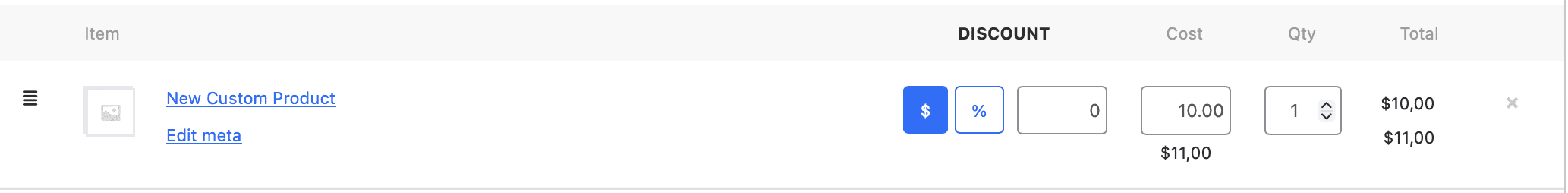 To add an existing product to an order, enter the product name or SKU in the search field.