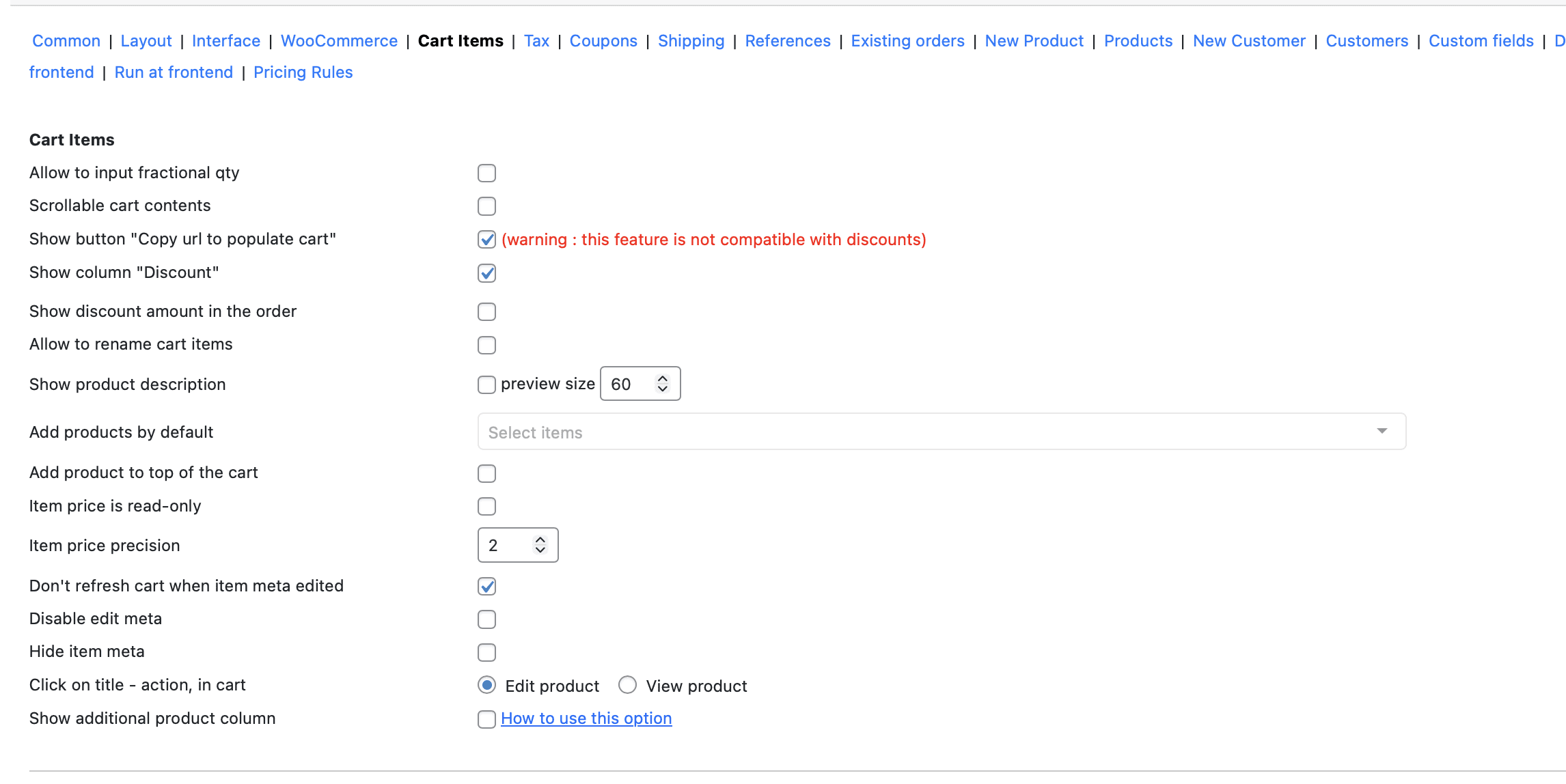 Click on title – action, in cart. Choose what to do after clicking on the product’s name: go to edit product page or view a product.