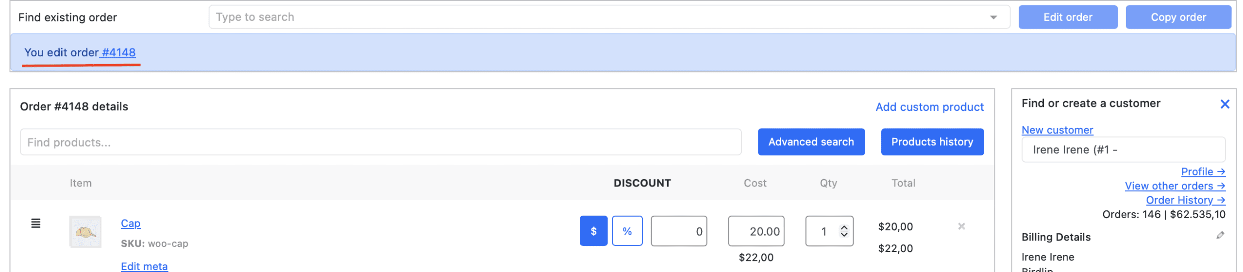 Using the Phone Orders for WooCommerce PRO, you can operate with the existing orders.