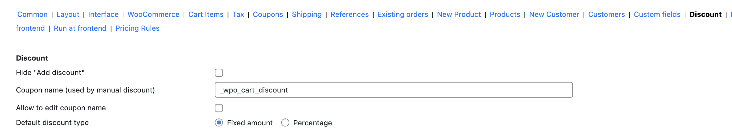 Allow to edit coupon name. Tick this option to show a field for inputting a coupon name in the “Add discount” popup window.
