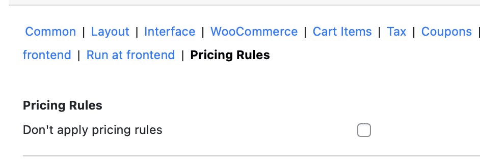 The “Pricing rules” tab contains the option for the adjustment of the pricing plugins behavior.