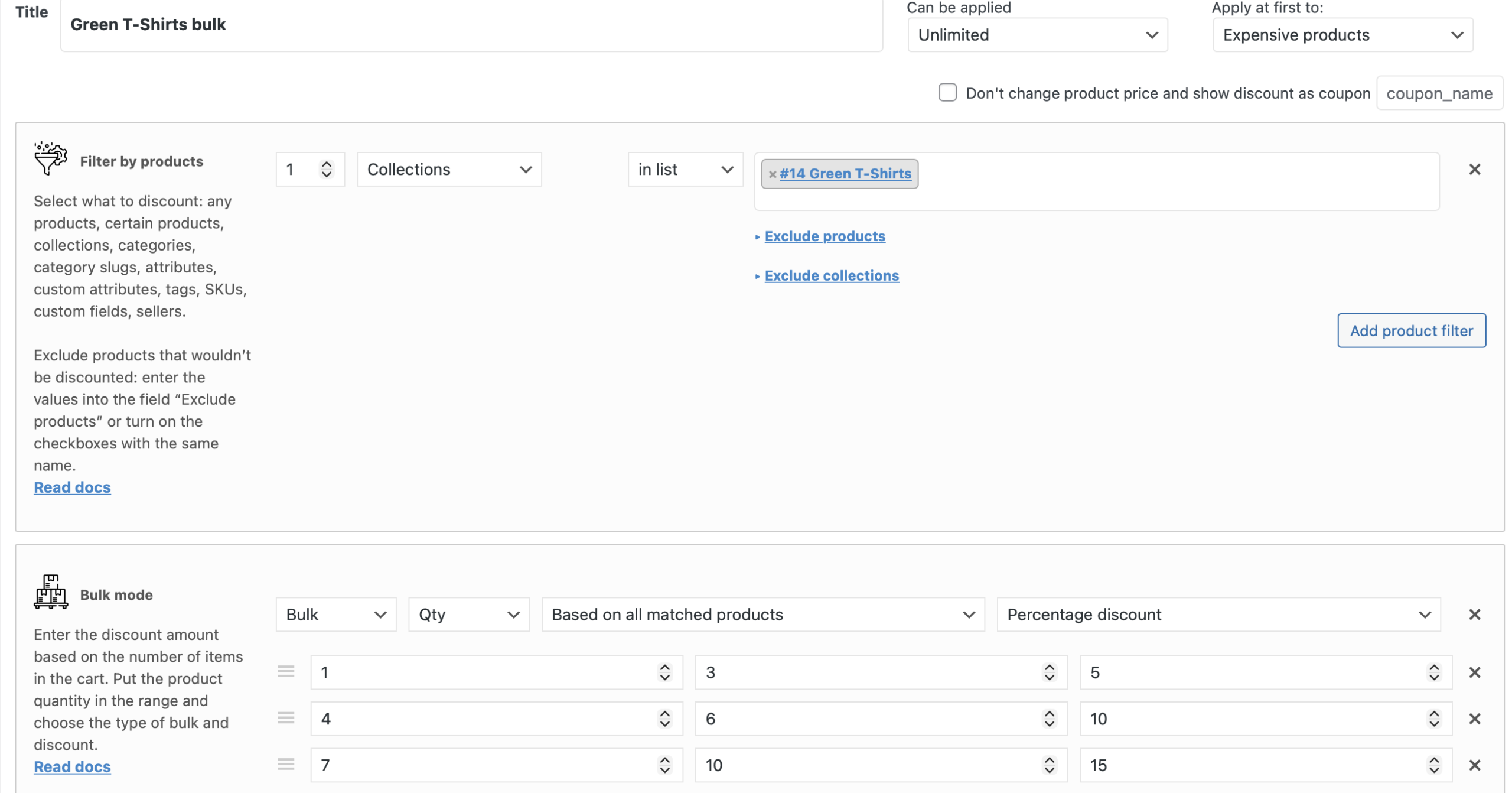 One of the most popular request is to create a rule for the products from the certain category and attribute. For example, the bulk discount for all the green t-shirts. Let’s create the Product collection: