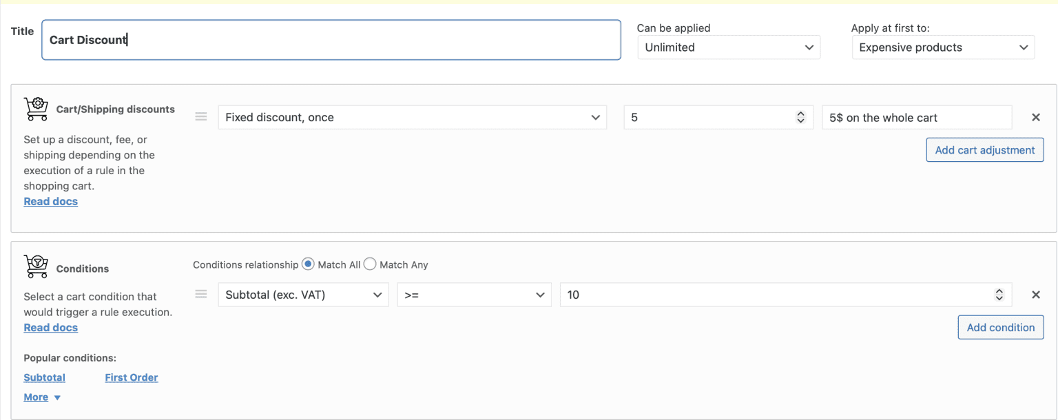 Let’s review the most demanded rules for the free version of the Advanced Dynamic Pricing and Discount Rules for WooCommerce.