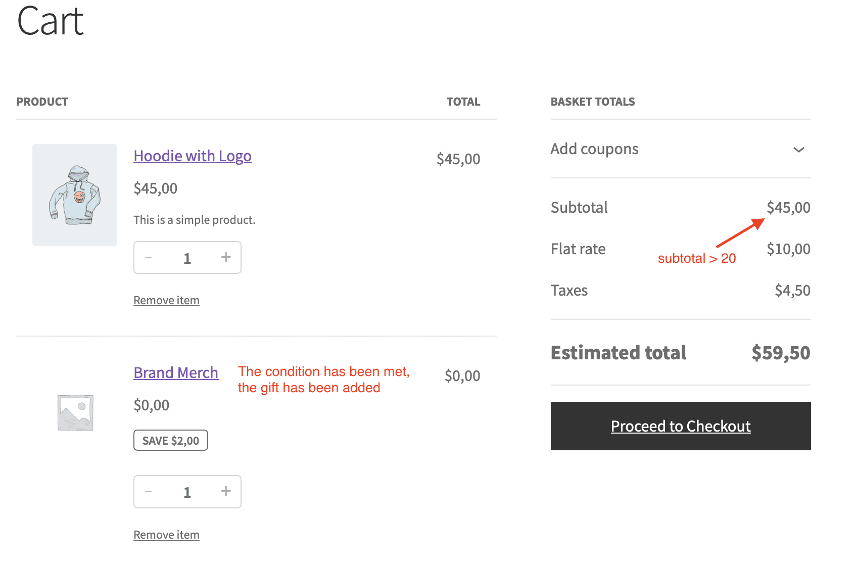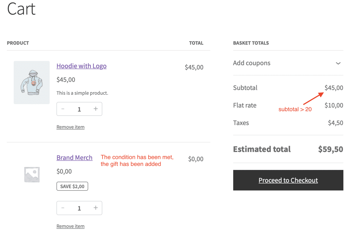 The “Gift” rule’s template helps to create the conditional gift rule.